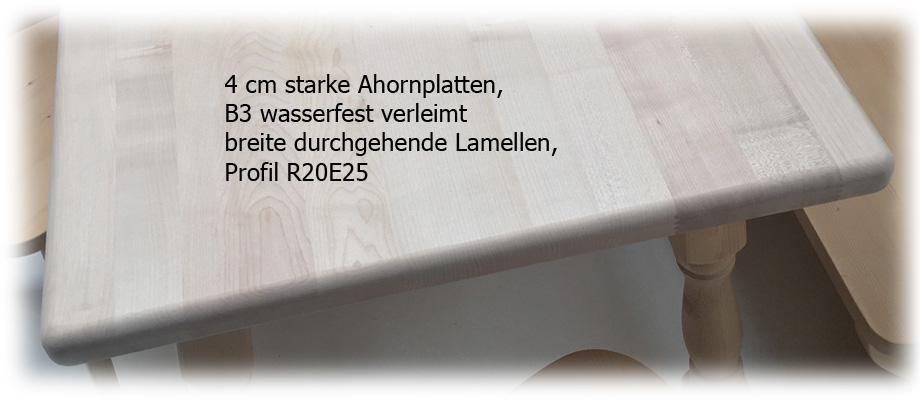 Eckbankgruppe Alina, Tisch mit massiver Hartholzplatte Ahornplatte