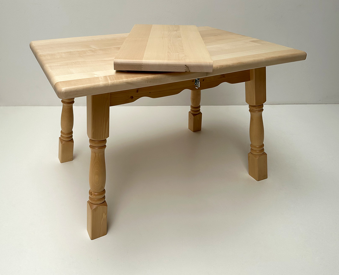 Vierfußtisch Amberg 120/80 cm mit Ahornplatte, mit Einlegeplatte 40 cm Ahorn