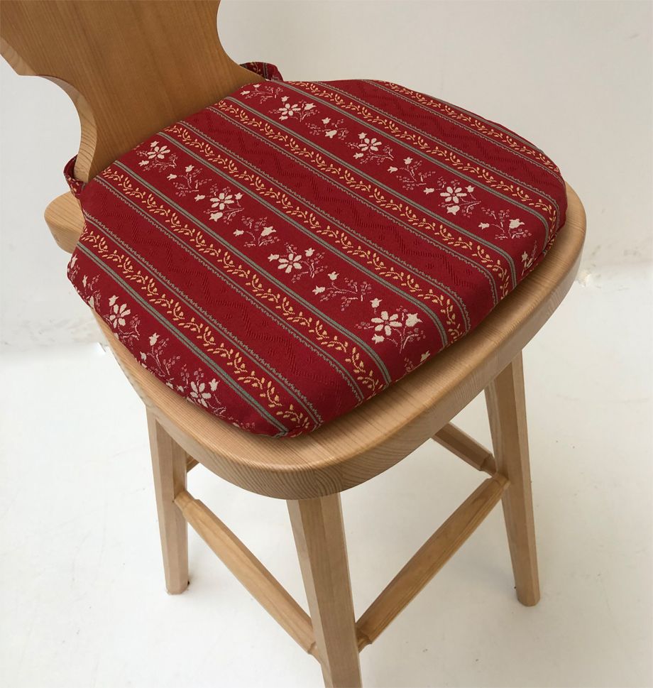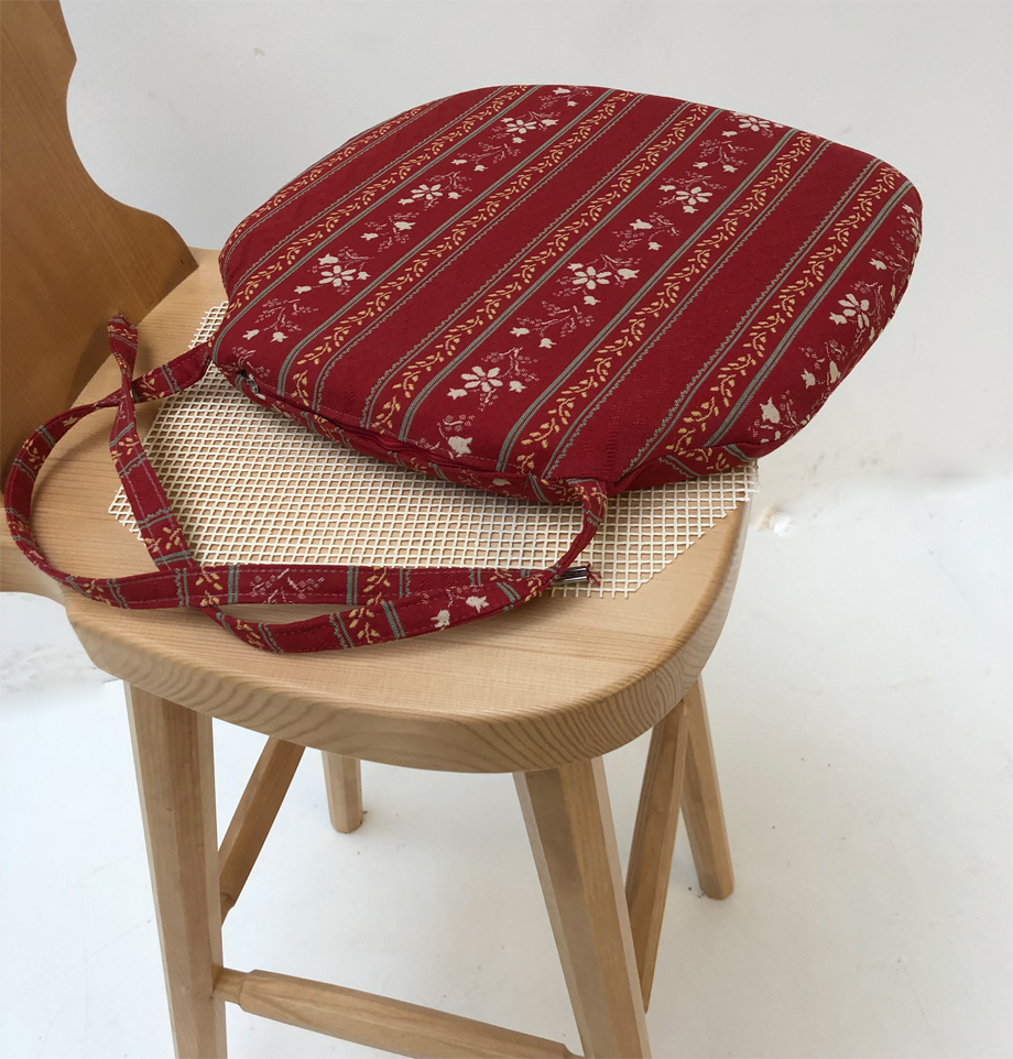 inkl. Stuhlkissen Ausführung lose genäht mit Reissverschluß zum Abziehen und Bänder zum Anbinden! Fest eingenähte Bänder aus dem gleichen Möbelstoff, Enden der Bänder gekrimpt ! Gegen Verrutschen mit Antirutschunterlage !