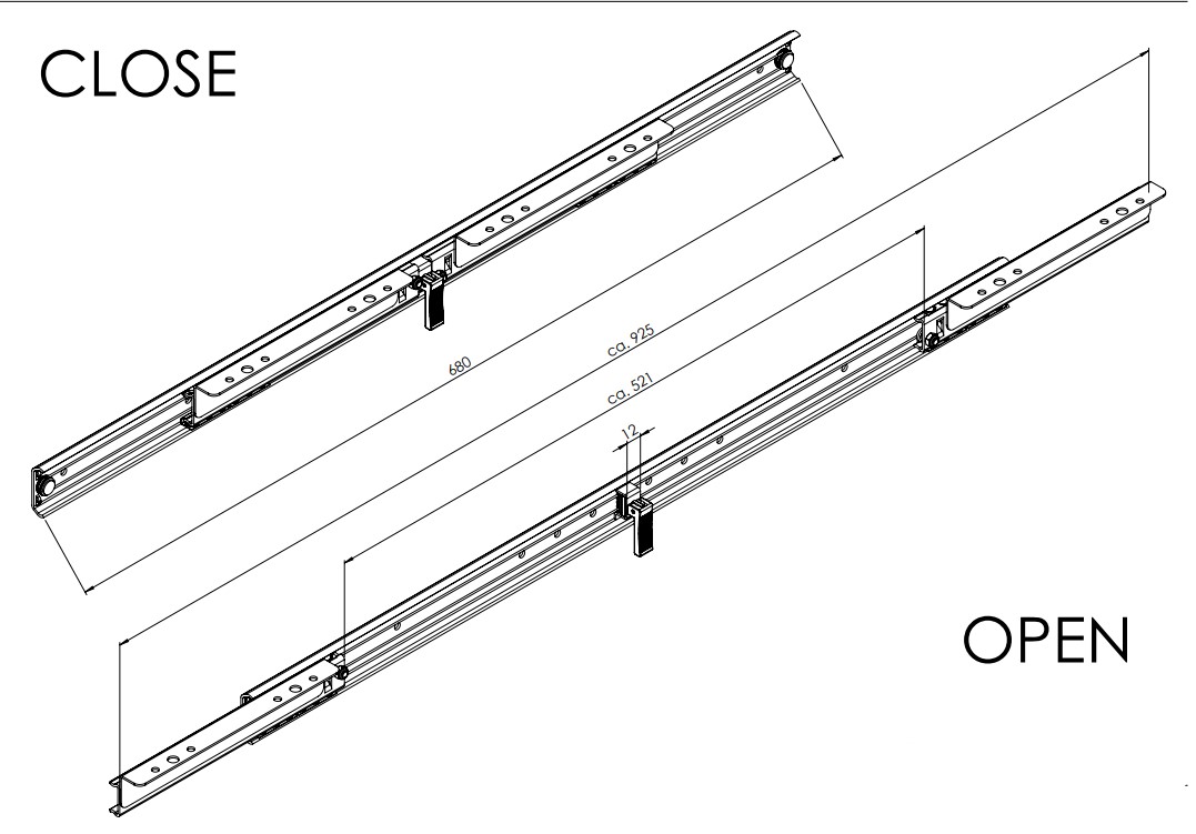 Tischauszug Metall 68-52-93, 1 Einlegeplatte 50 cm, synchron, mit Bremse