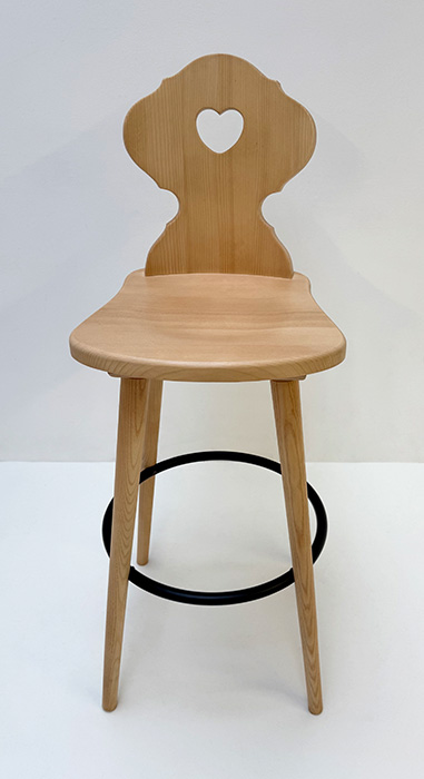 Abm. 48  x 52 x 119 cm, B/T/H , Sitzhöhe 80 cm, Sprossenhöhe Fußkranz Metall  33 cm, Lehne mit Herz, Fichte massiv