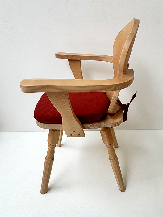 Armlehnstuhl Bauernstuhl Munich, gedrechseltem Fuß, Fichte, Rosner gewachst, Kissen genäht Wels rot