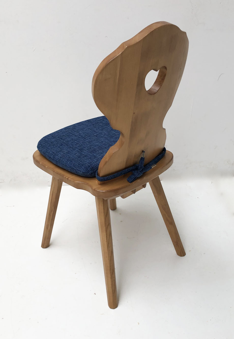 mit Stuhlkissen lose genäht mit Reissverschluß zum Abziehen, Bänder zum Anbnden aus gleichem Möbelstoff, Enden sauber gecrimpt !