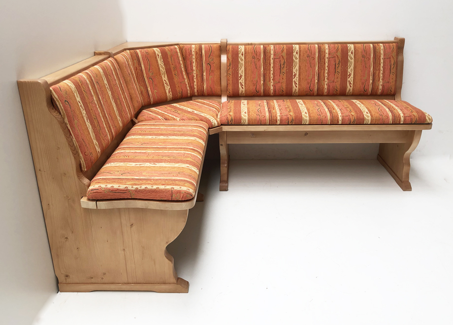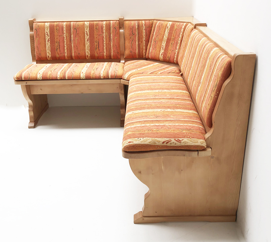 1 Eckbank 150/185 cm mit Truhen , Gesamthöhe 85 cm, mit Truhen wechselseitig stellbar Alles in Fichte massiv, Rosner gewachst