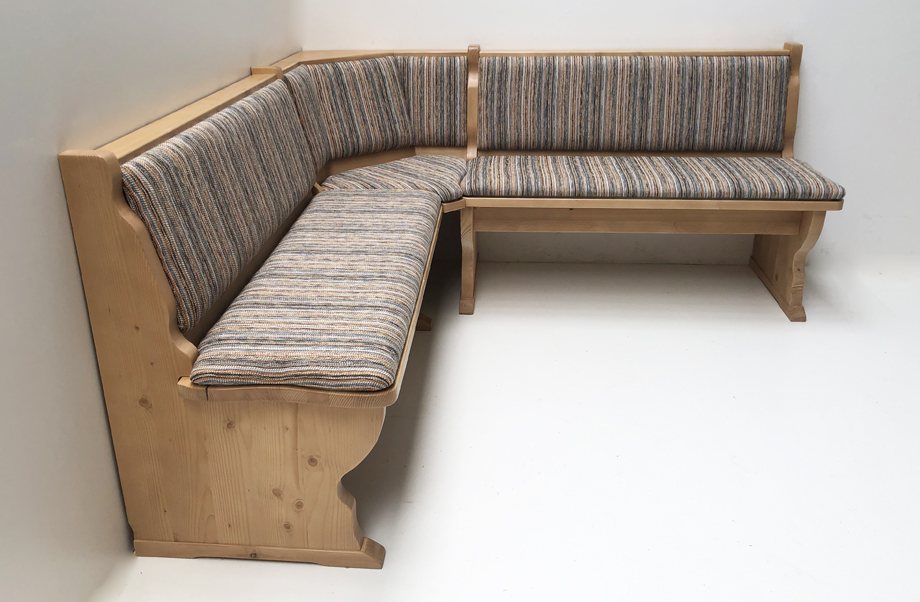 1 Eckbank 185/185 cm mit Truhen , Gesamthöhe 85 cm, mit Truhen wechselseitig stellbar Alles in Fichte massiv, Rosner Hartwachs