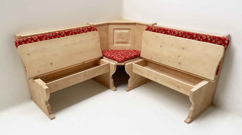 1 Eckbank Amberg 165/165 cm, Gesamthöhe 85 cm, mit Truhen,  Alles in Fichte massiv, Rosner gewachst