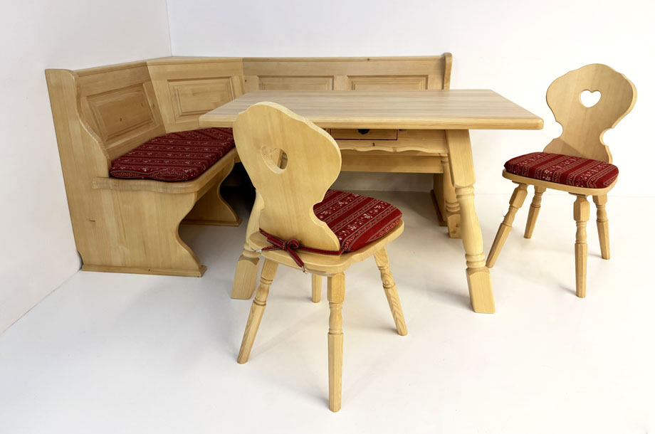Eckbankgruppe LINDAU 125/165 Fichte, Tisch 4510-Amberg, Bauernstühle Vienna, Polster genäht TS-1667