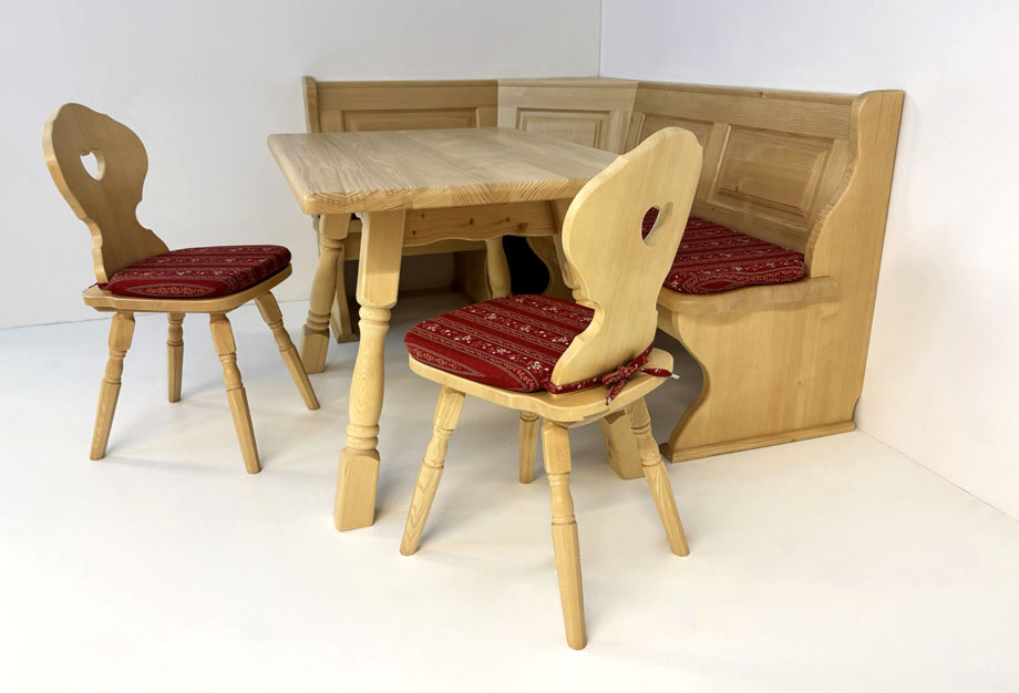 Eckbankgruppe LINDAU 130/180 Fichte, Tisch 4510-Amberg, Bauernstühle Munich, Polster genäht TS-1667