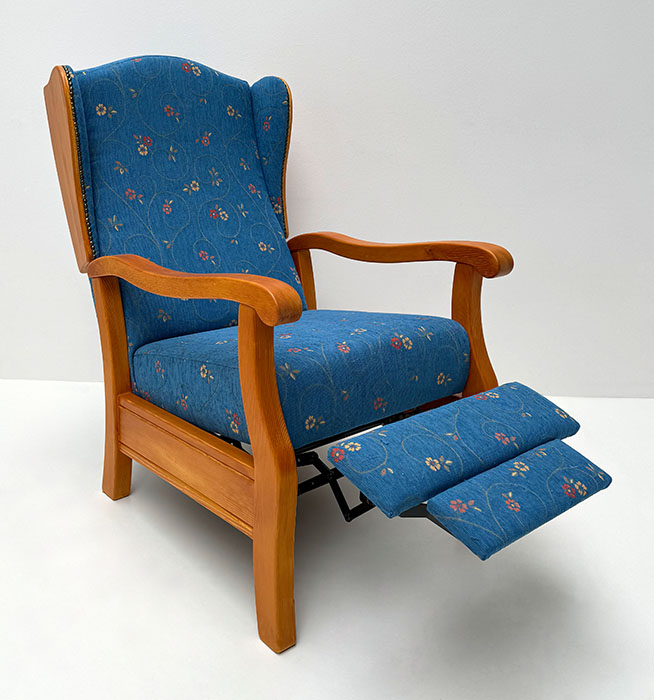 Fernsehsessel TV-Sessel Inzell mit Funktion, Honig 07, Armlehnpolsterung, Stoff Pöchlarn Ranke blau