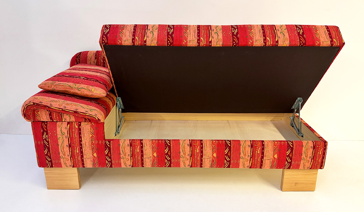 Küchenliege Polsterliege Rosenheim, Sitz aufklappbar, Kopfteil verstellbar, Wels rot