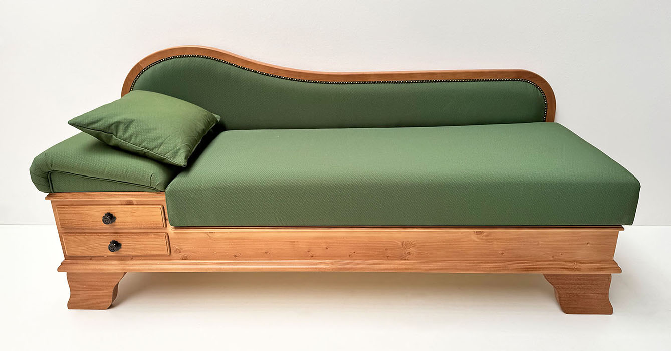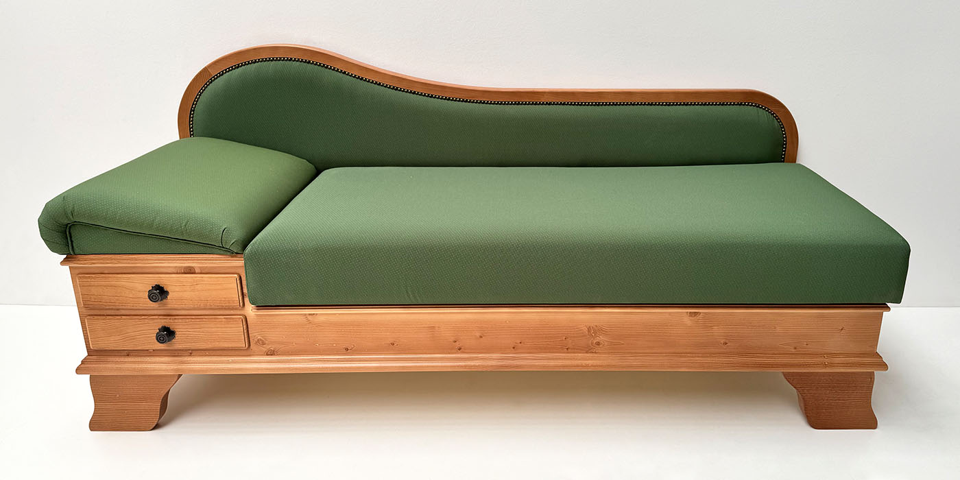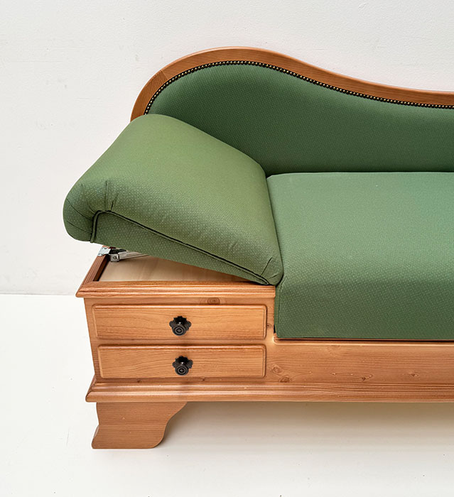 Sofa Liege Garmisch, Sitzhöhe erhöht, Adler Cortina 11459, Wels grün