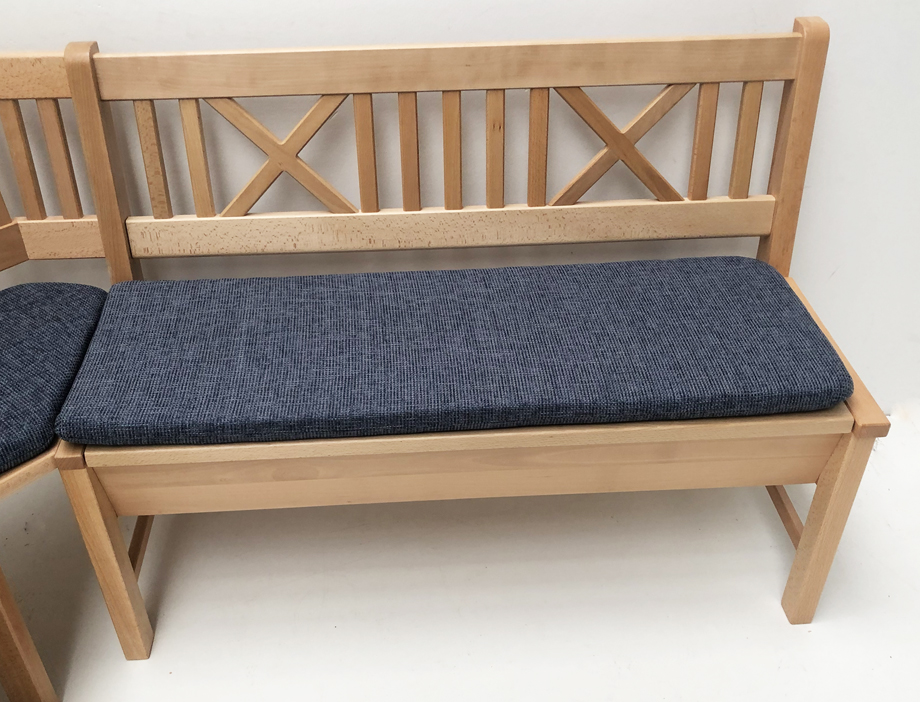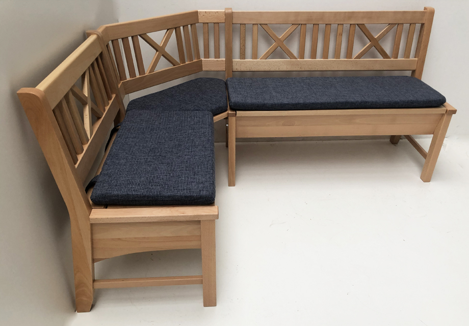 Eckbank Bodensee 137/179 cm, Buche massiv, Polstersatz genäht Stoff Natura blau 812