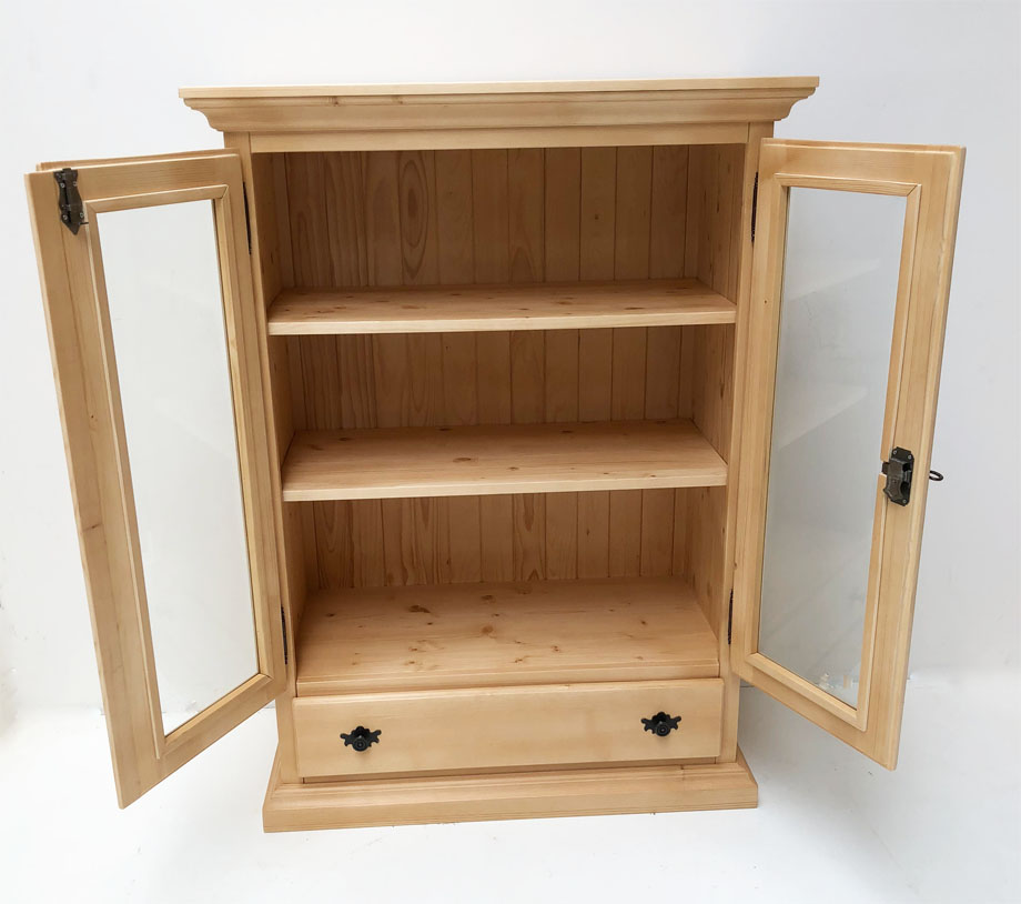 2-trg. 2 Glastüren,1 Schubladen, mit Sockel, 95/130/43 cm (B/H/T), Fichte massiv, Rosner gewachst , Hartwachs, Rosner lackiert Lugano/Bassano/Cortina/weiß lackert gegen Aufpreis