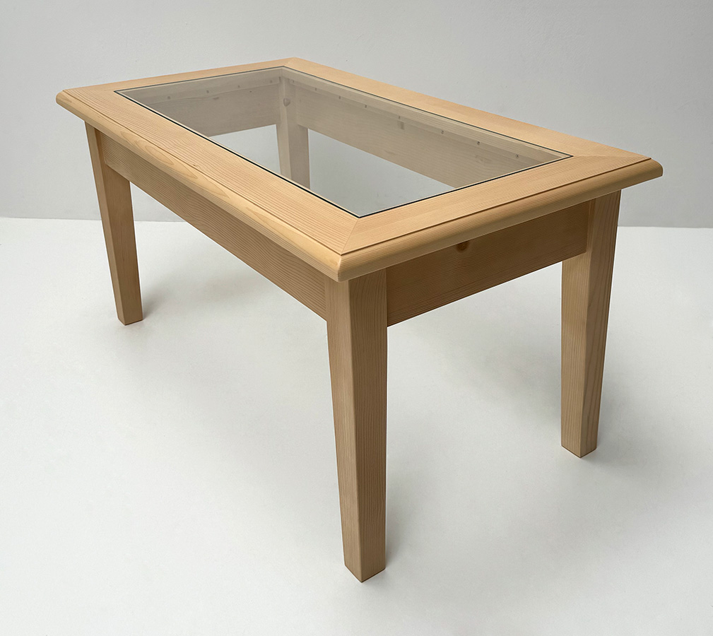 Couchtisch Füssen 110x70 cm, Höhe 55 cm, mit Glasplatte, Fichte lackiert