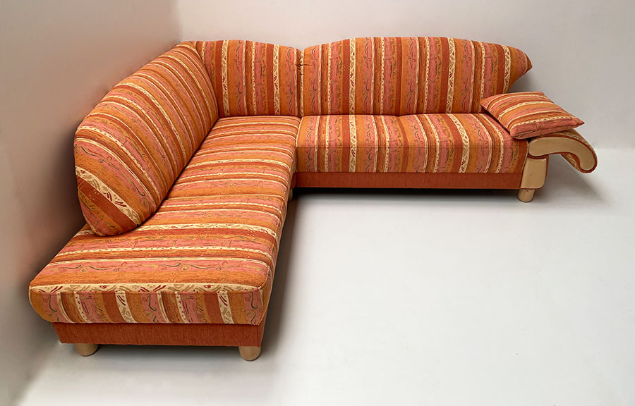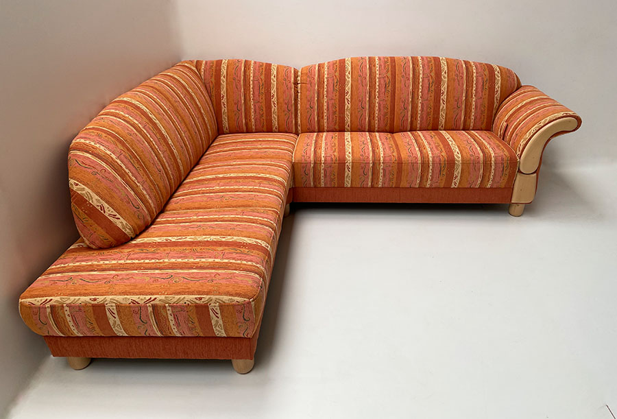 Eckgarnitur Davos Modell 440-42-55, Stellmaß 218/251 cm, Armlehne rechts abklappbar, Stoff Pocking terra, Rückseite mit Echtstoff bezogen, ohne Kissen