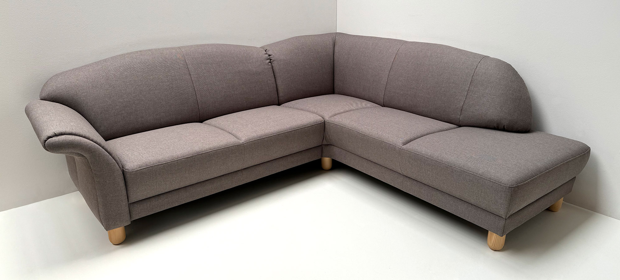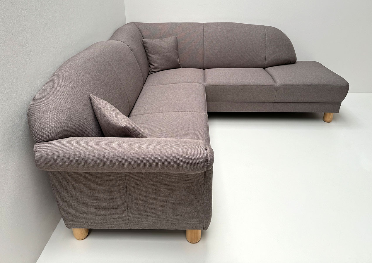 Eckgarnitur Davos Modell 440-54-41, Stellmaß 251/218 cm, Armlehne links fest, Stoff Verano 604, Rückseite mit Echtstoff bezogen, ohne Kissen