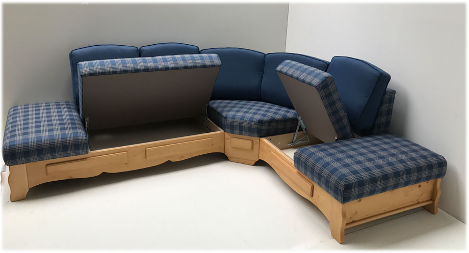 Gesamtmaß 270/215 cm, Sitz 110 und 55 cm und Anbauhocker rechts aufklappbar