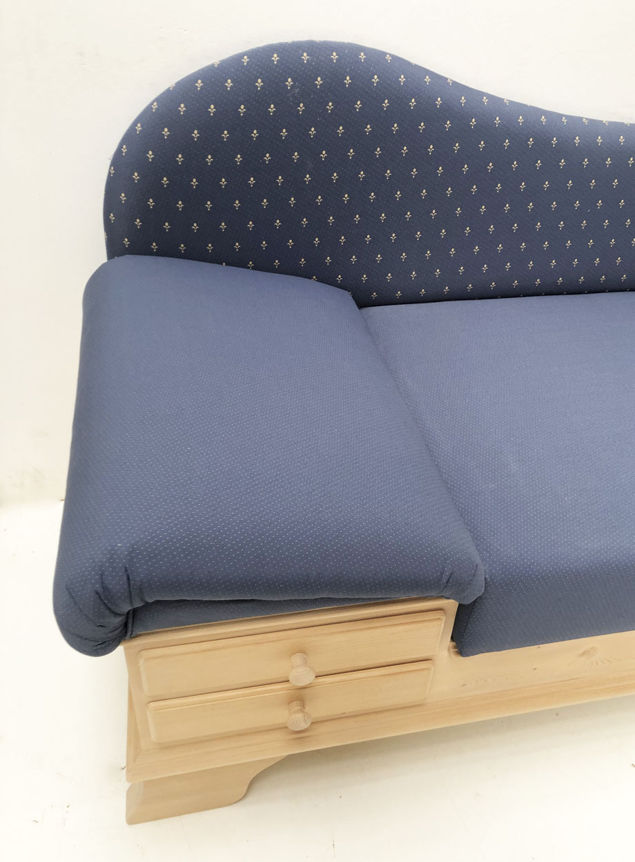 Stoffeinteilung: Rücken und Rückseite in Kundl blau Lilie, Sitz und Kopfteil in Wels blau Uni punkt !