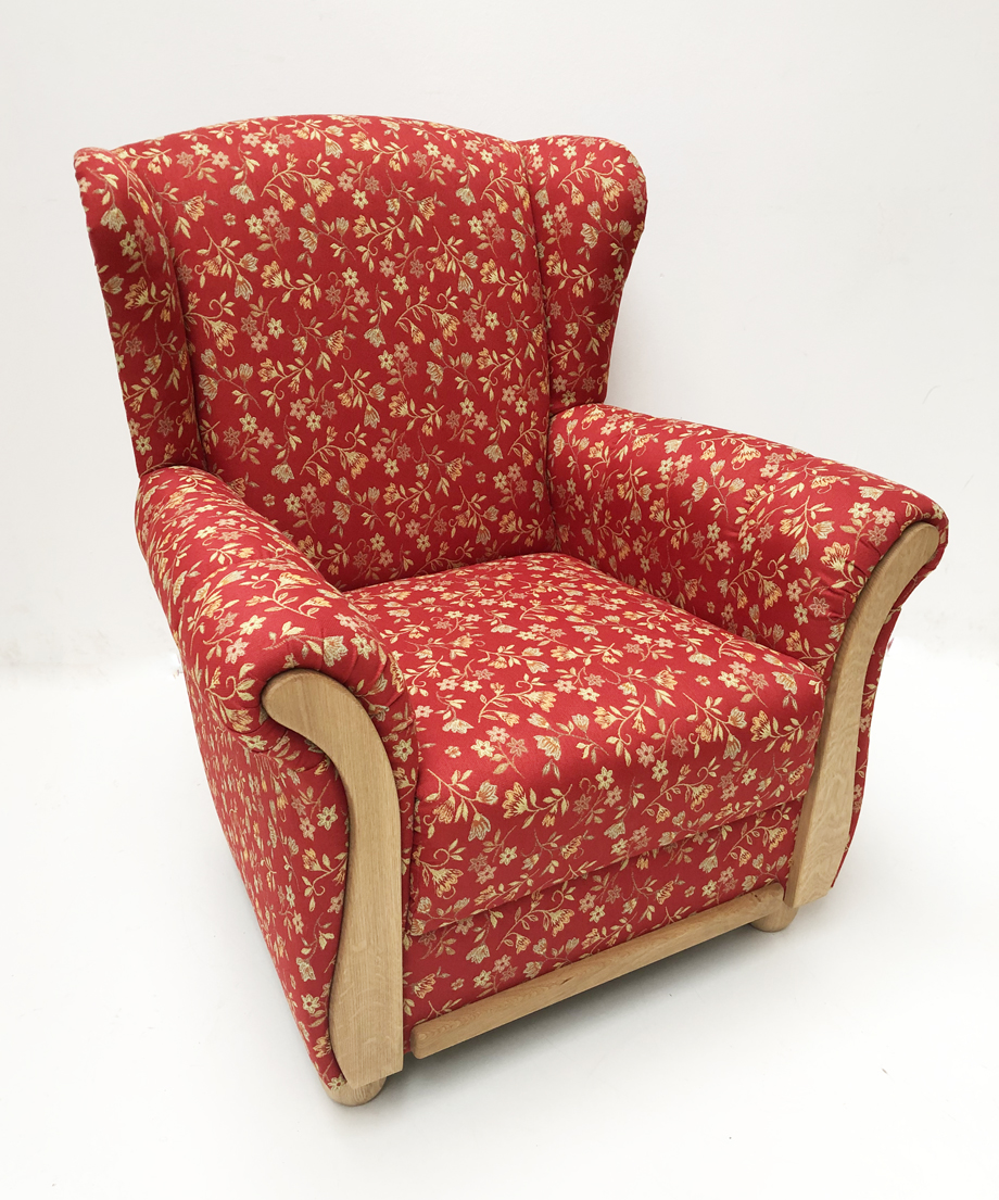 Ohrenbackensessel und Hocker LENA, Eiche , Mülheim rot