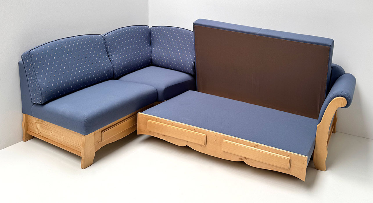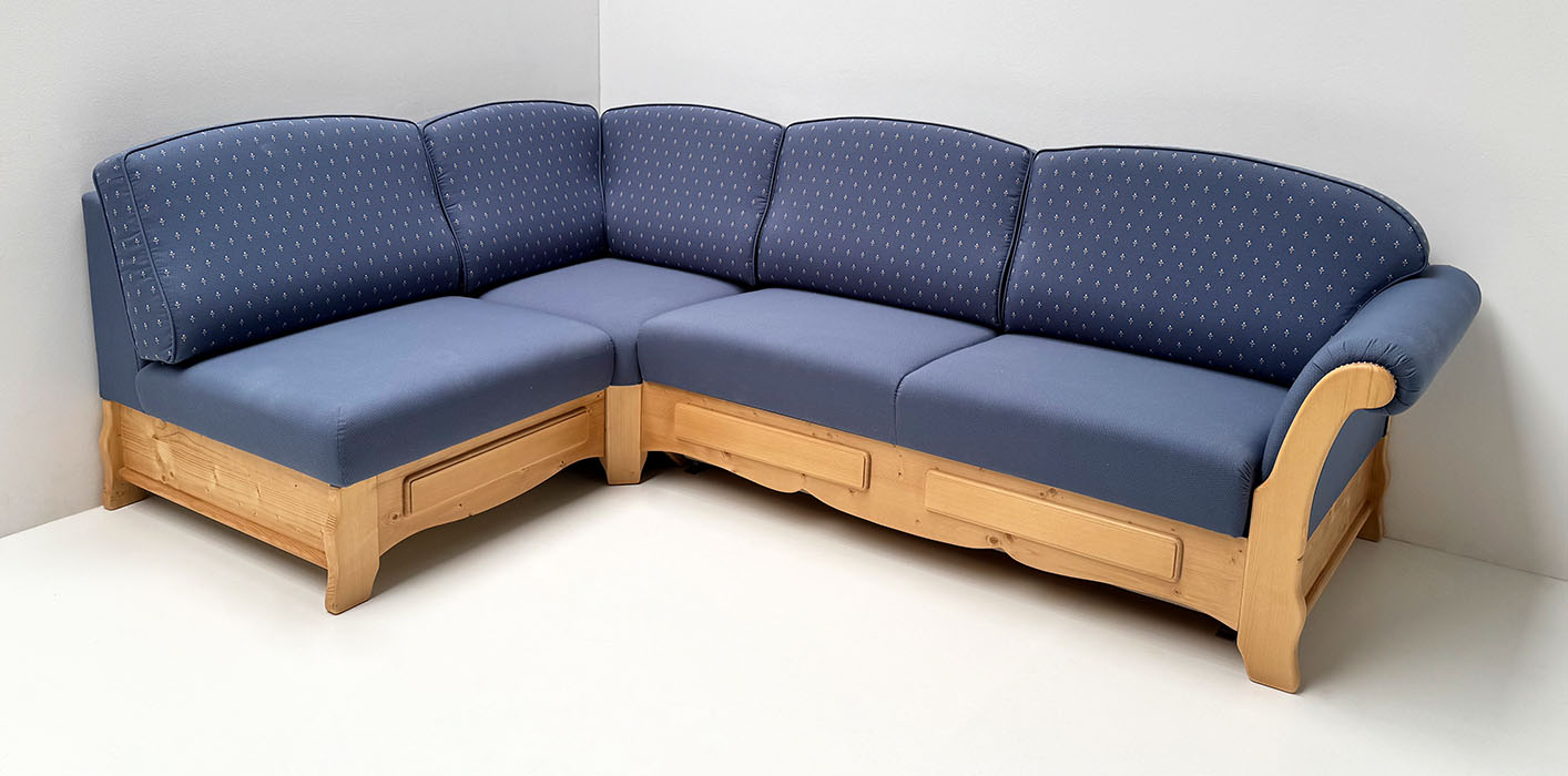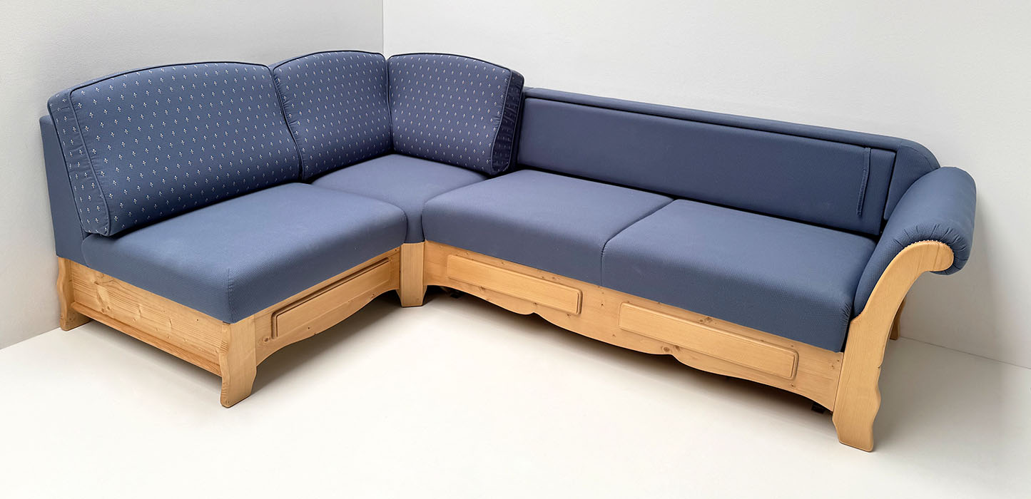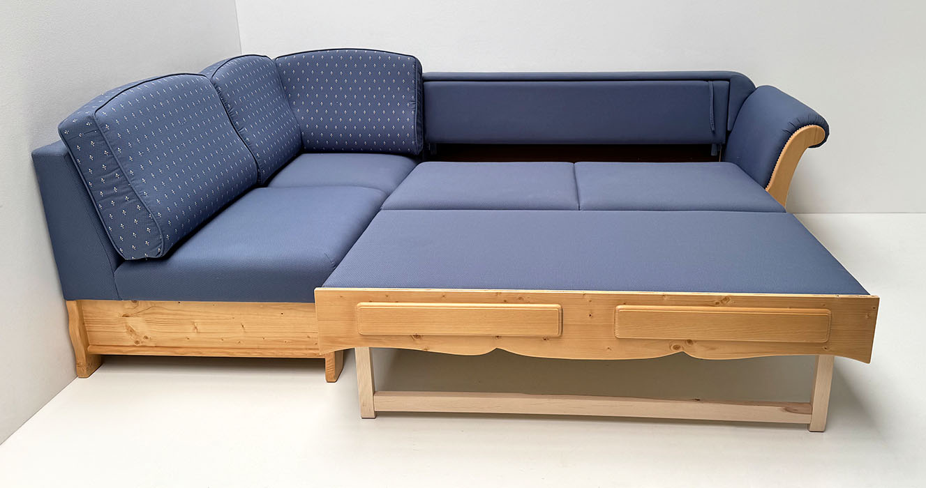 Sofa Liege Sterzing Achensee mit Bettfunktion, Holz Ficht auf alt, Glasgestrahlt, Stoff Höpke RIO804