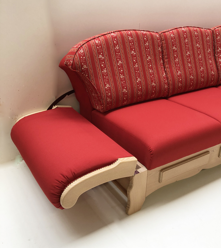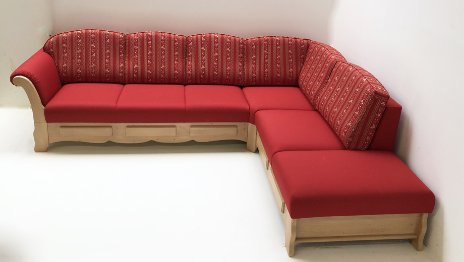 Stoffeinteilung: Rückenkissen Brixen TS-1667 (rot gestreift), Sitzfläche Brixen TS-1673 (rot gepunktet)