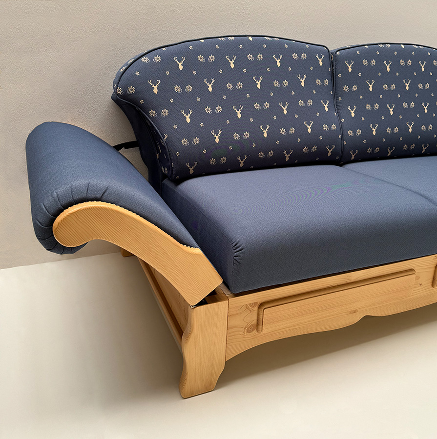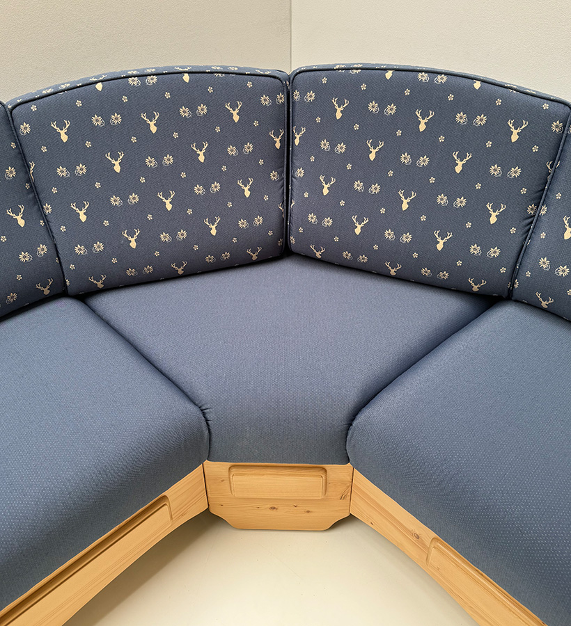 Eckbank Amberg klein 185/150 m.Truhe, Solo, Hartwachs, Polster genäht Landleben TS-3003, Hirsch blau