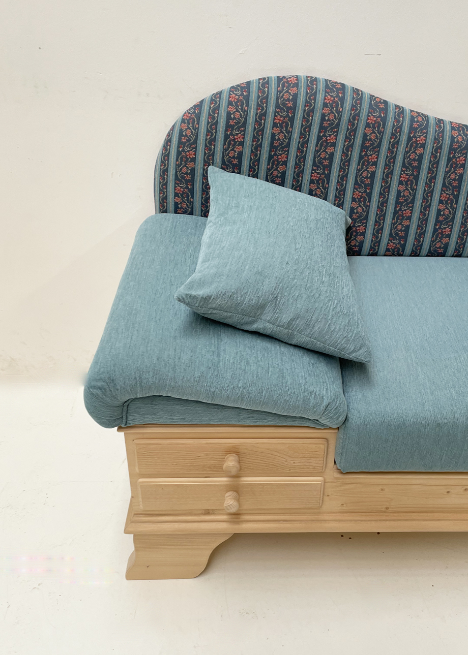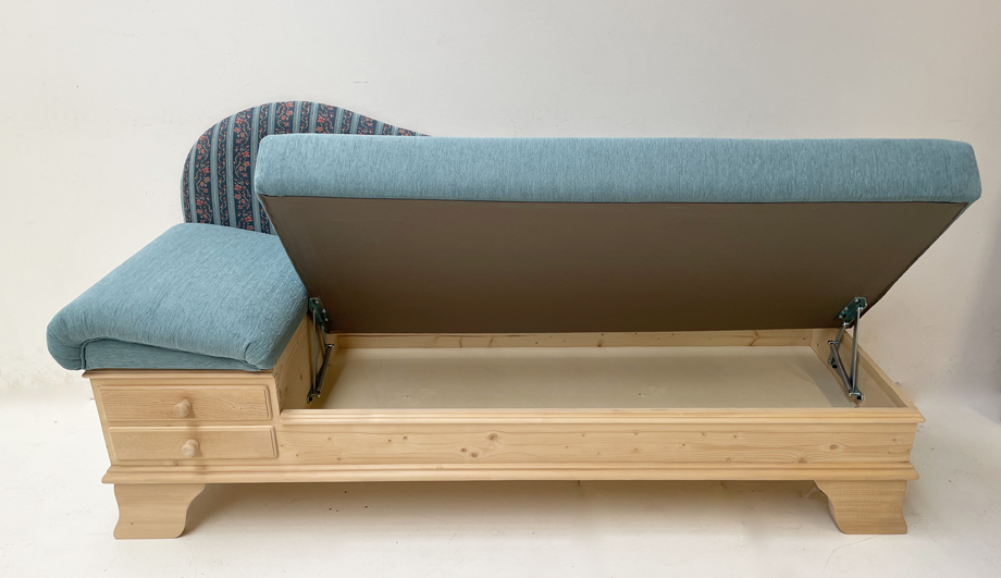 Sofa Liege Chiemgau, Sitzhöhe 50 cm, Waidhaus blau! Waidhofen blau! 38 Lagerstoffe preisgleich