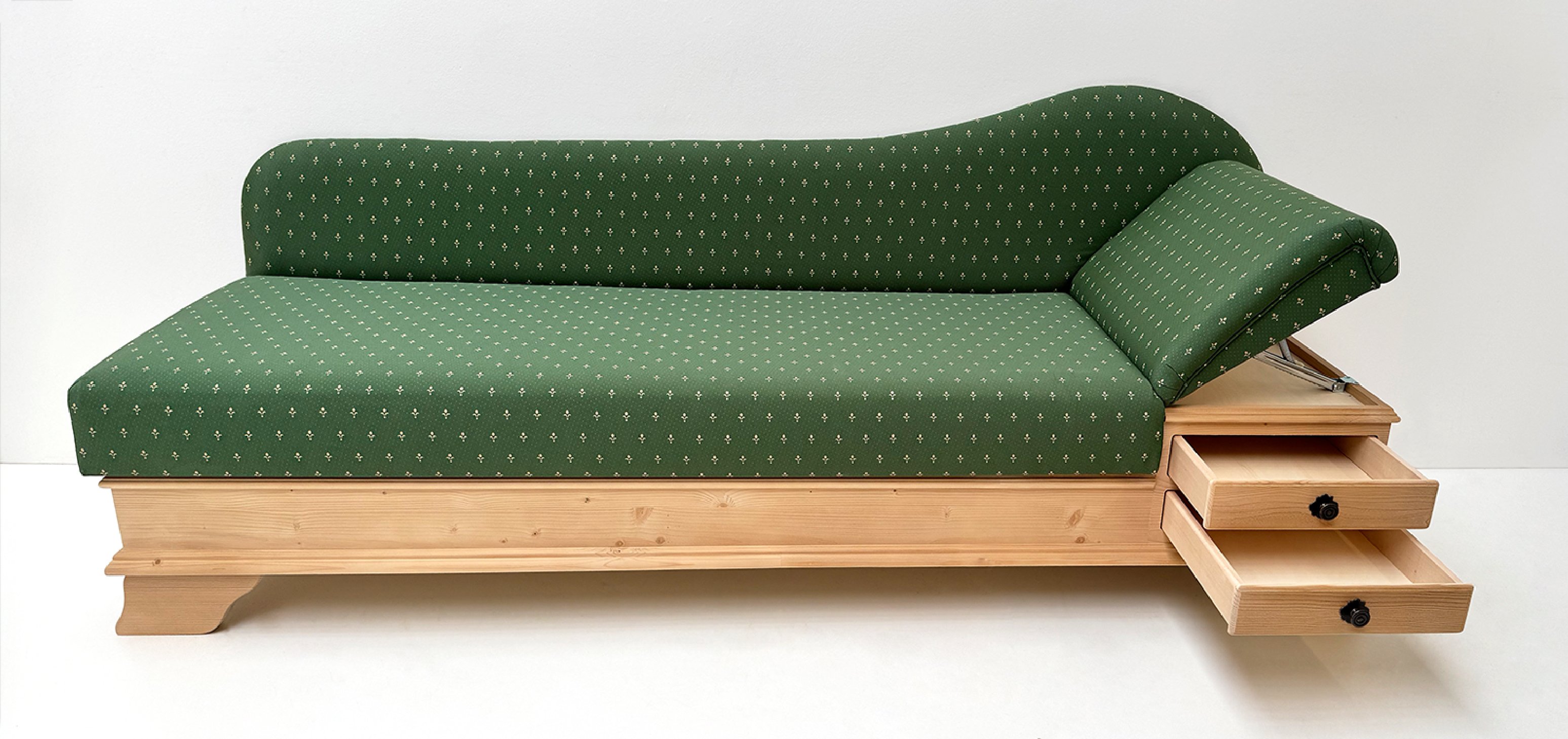 Liege Chiemgau Kopfteil rechts wenn man davorsteht und auf die Liege sieht