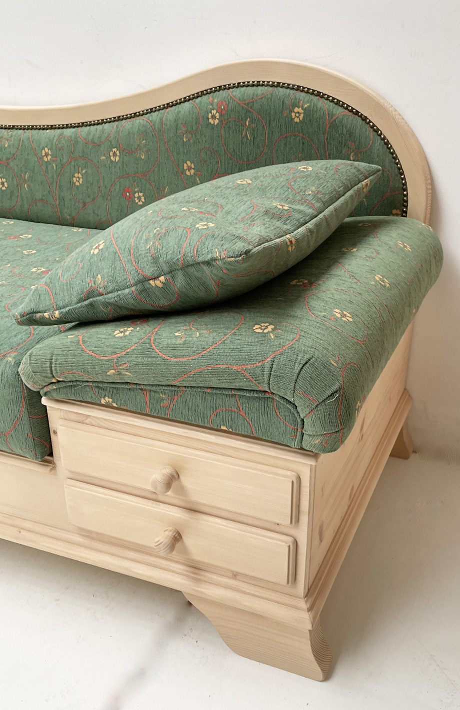 Sofa Liege Garmisch, Kopfteil rechts, Pöchlarn Ranke grün, 38 Lagerstoffe preisgleich
