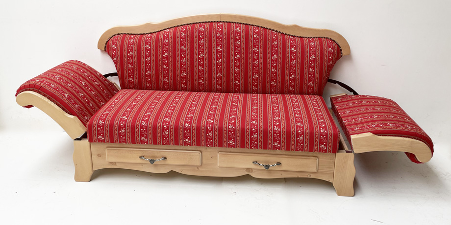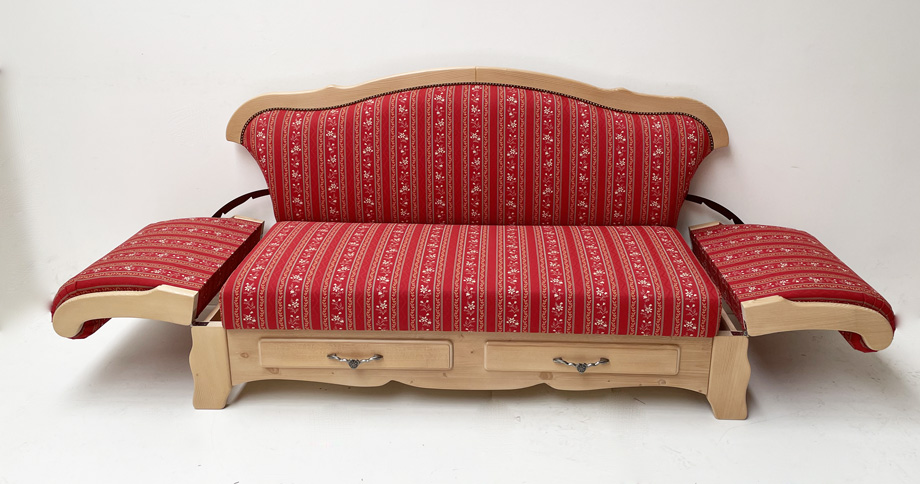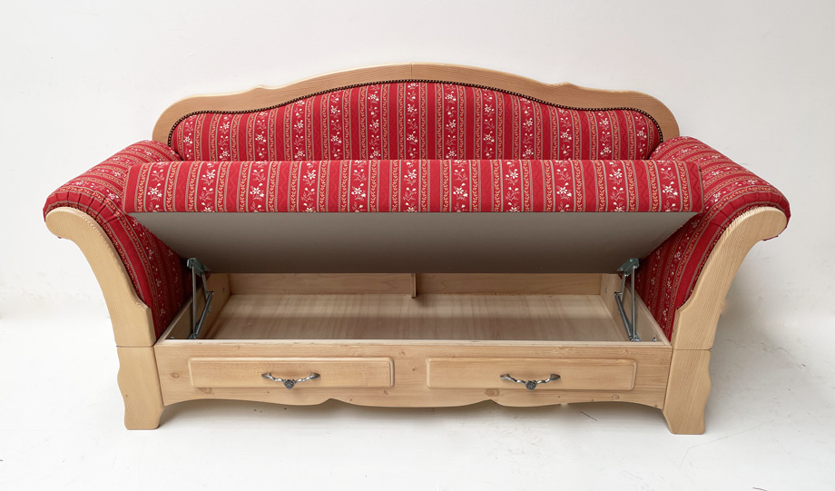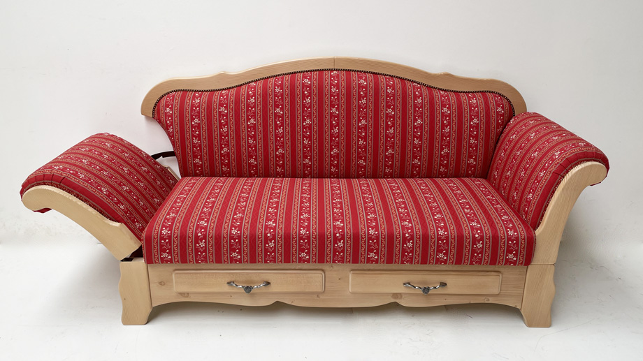 Sofa Kempten in Gesamtlänge 190 cm, Sitzlänge 140 cm, 2 Armteile im Raster abklappbar, Sitz aufklappbar !