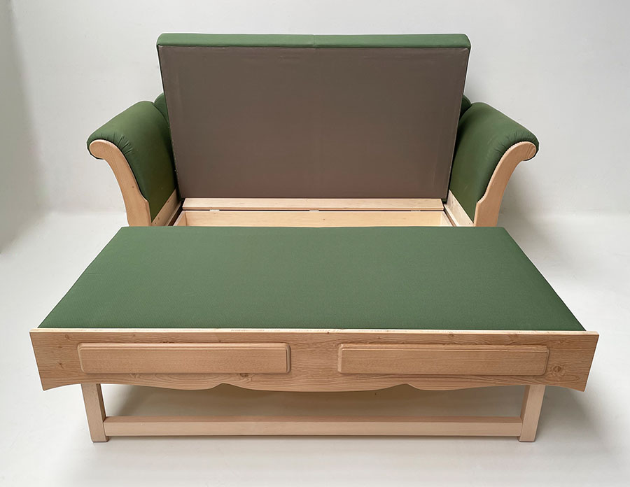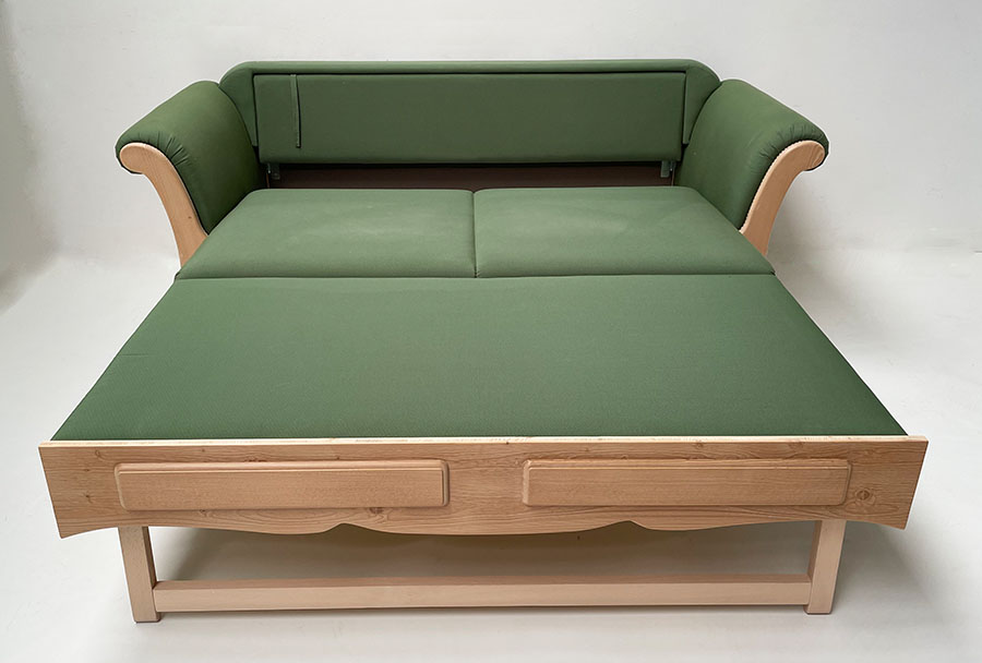 Sofa Liege Sterzing Achensee, mit Bettfunktion, Fichte, Antik hell, (Kleur1), Kundl grün, Wels grün