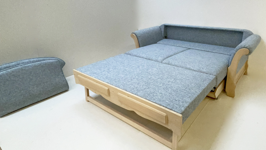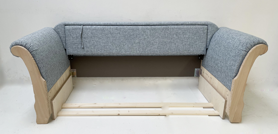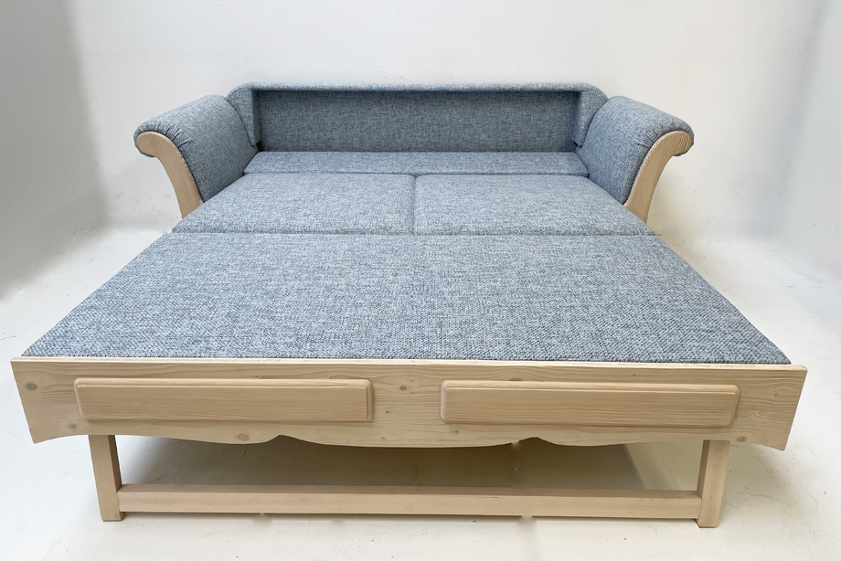 Sofa Liege Sterzing Achensee mit Bettfunktion, Holz Ficht auf alt, Glasgestrahlt, Stoff Höpke RIO804