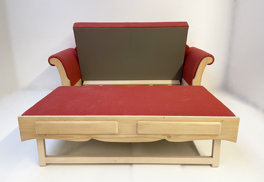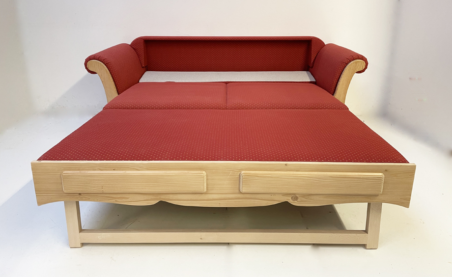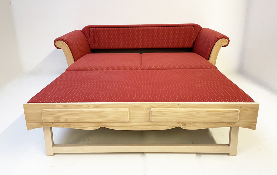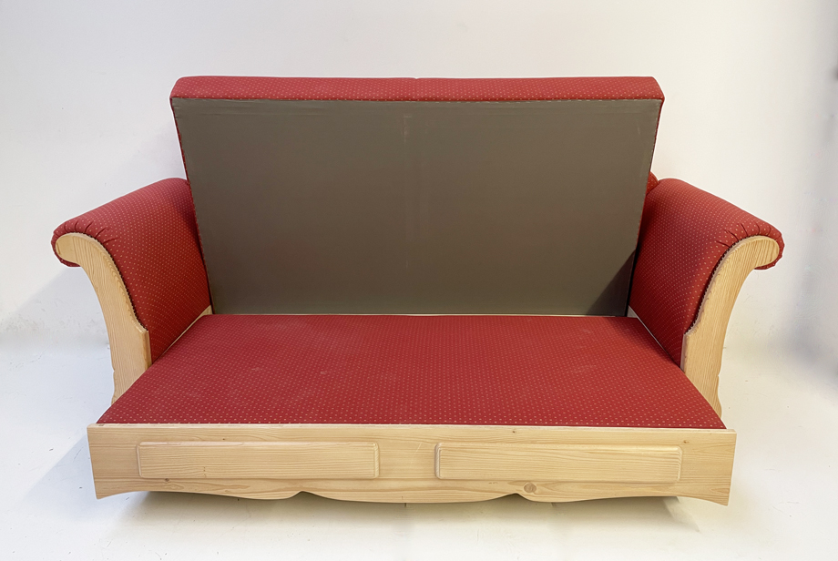 Sofa Liege Sterzing Achensee mit Bettfunktion, Holz Ficht auf alt, Glasgestrahlt, Stoff Höpke RIO804