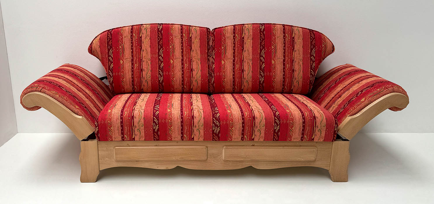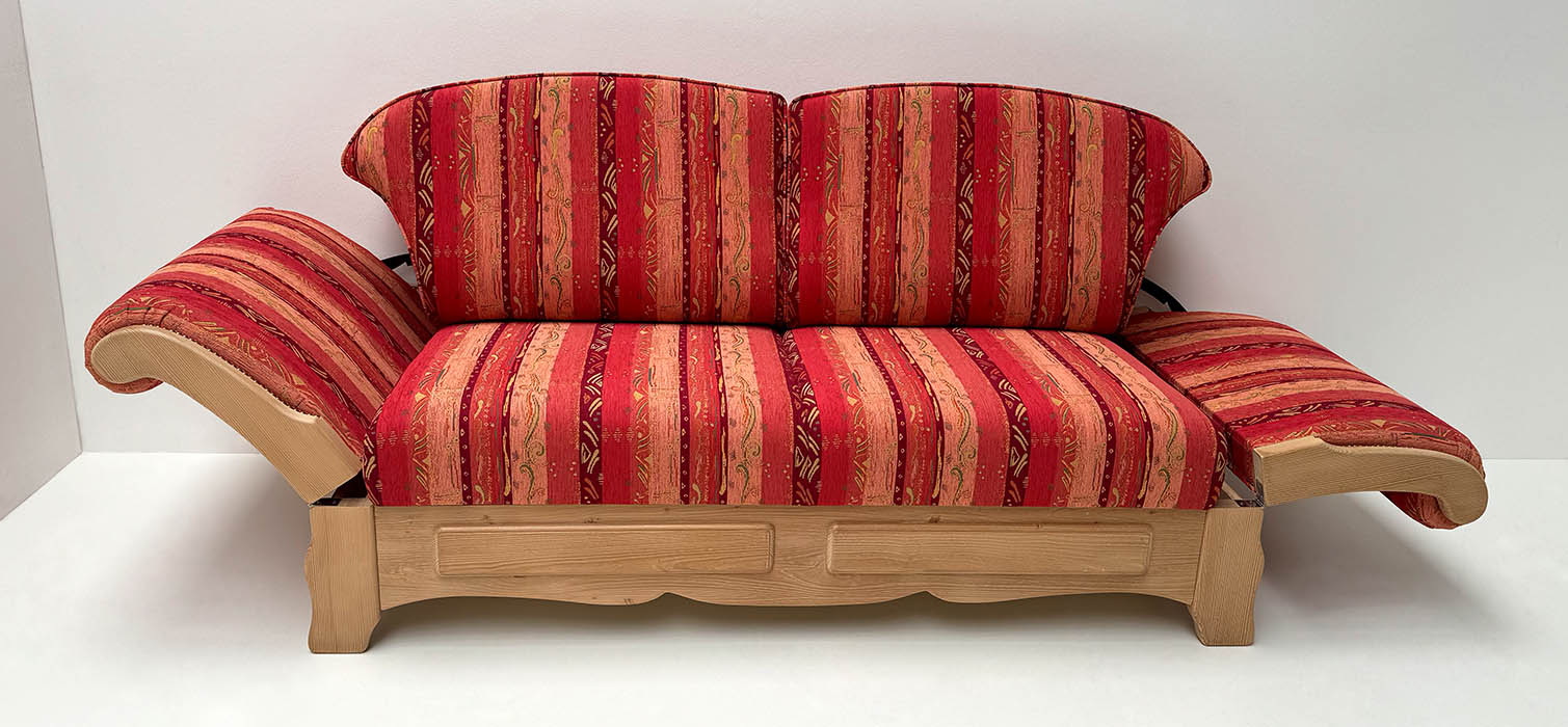 Sofa Sterzing, Sitz aufklappbar, 2 Armlehnen abklappbar , plus jeweils 35 cm Platzbedarf