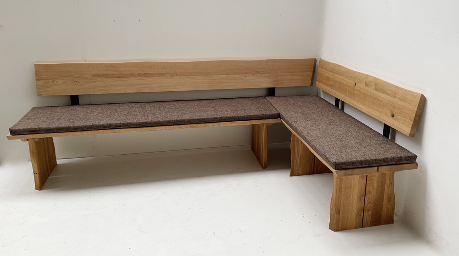 Eckbank Baumbank Oviedo Sondermaß !! 140/200 cm Wildeiche massiv, Polster genäht, Natura 804 braun