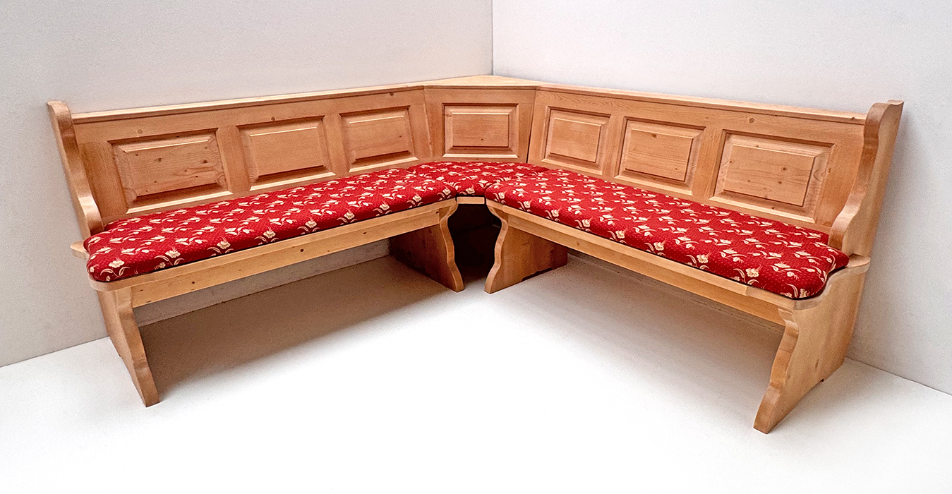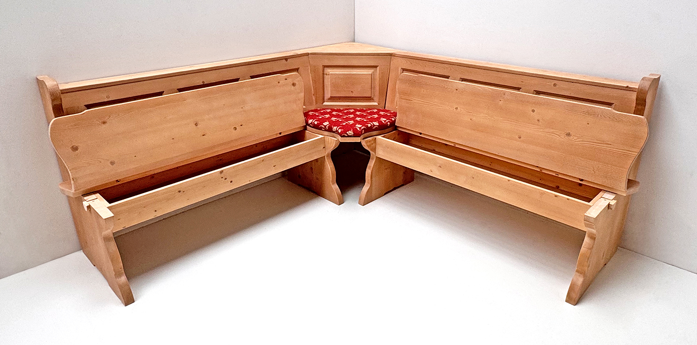 Eckbank solo Mod. Landau, 195/195 cm, mit Truhen nach oben aufklappbar! Massivsitz, Aussenwangen glatt