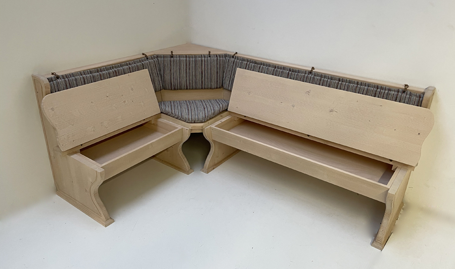 Eckbank Lindau 150/185, Truhen, Vollpolster genäht, Rückenpolsterung m.Ösen und Kordel zum Einhängen