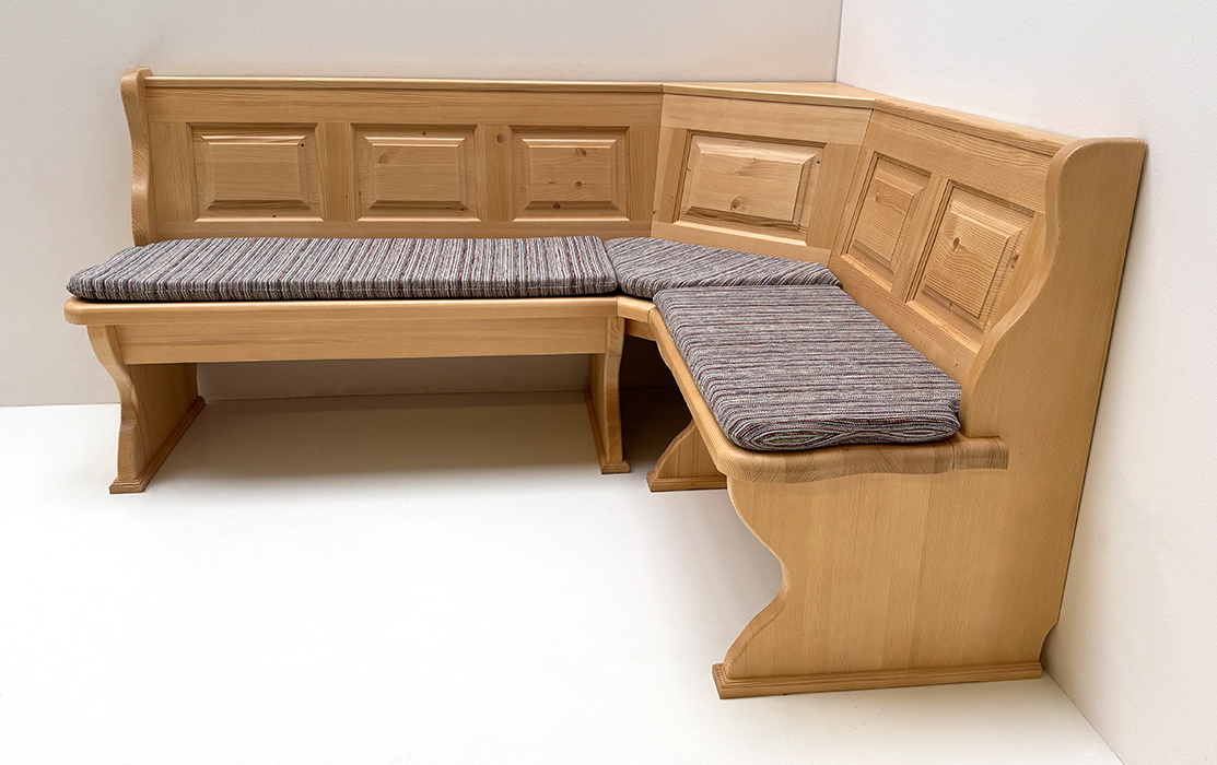 Eckbank Lindau 145/185 ohne Truhen, Höhenkürzung 83 cm, Aussenwangen glatt, gewachst, Salzburg -47