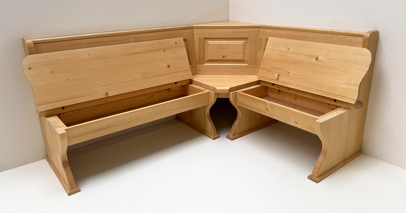 Eckbank Lindau, Stellmaß B>Schenkelmaß 185/150 cm, mit Truhen, Wangen glatt