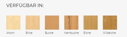 lieferbar in Ahorn, Ahorn auf Birke, Buche, Kernbuche, Eiche und Wildeiche, Gesamthöhe 93 cm, Sitzbreite 45 cm, Sitzhöhe 47 cm