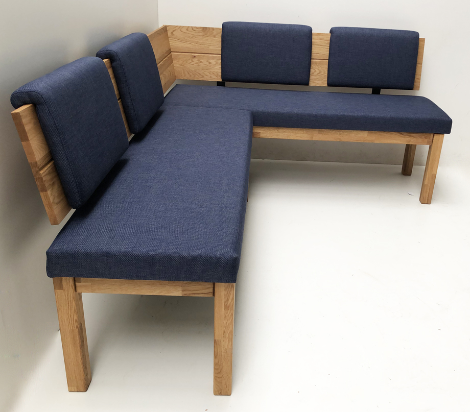 Eckbank Lorenzo 155/194 cm, Wildeiche massiv geölt, Stoff Polster Verano 674