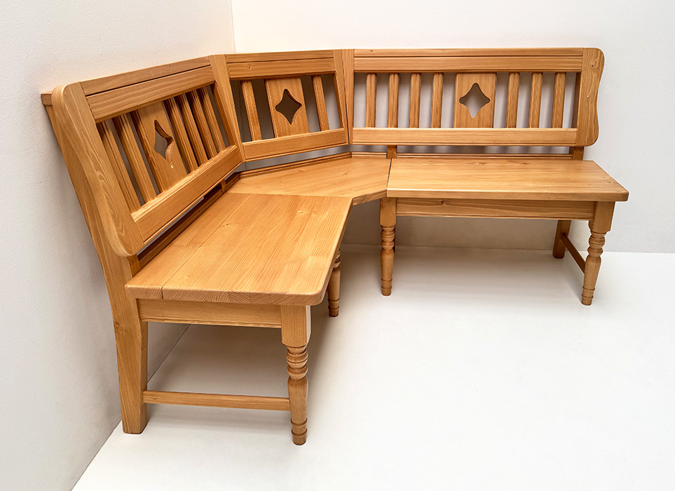 Eckbank Rangau 140/150 mit Sprossen, Ausführung mit Truhen, Fichte, Antik hell (Kleur 1)