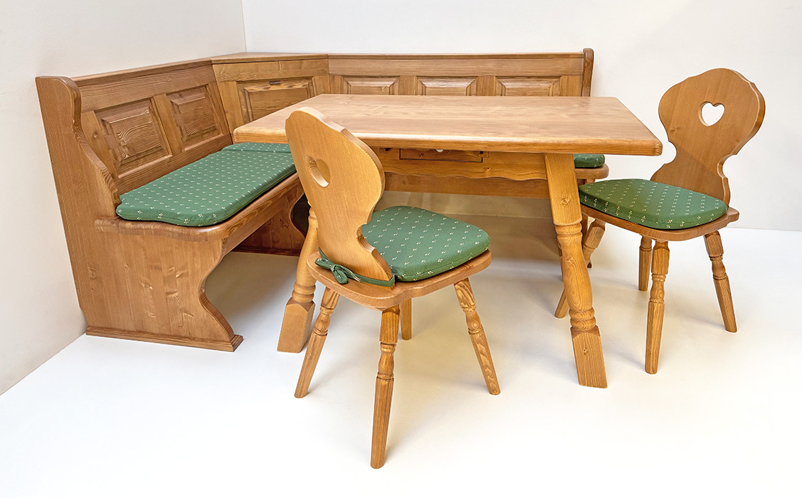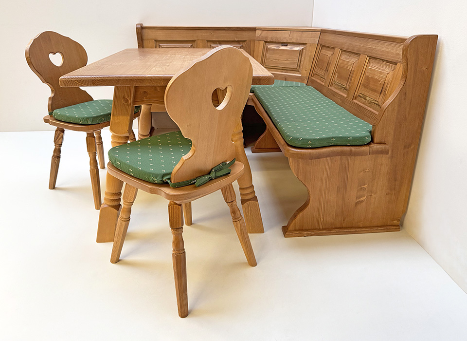 Eckbankgruppe LINDAU 150/185 Fichte, Tisch 4510-Amberg, Bauernstuhl Munich, Armlehnstuhl Munich