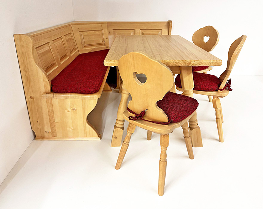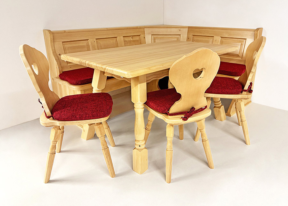 Eckbankgruppe LINDAU 150/185 Fichte, Tisch 4510-Amberg, Stuhl Munich, Armlehnstuhl Munich, Polster