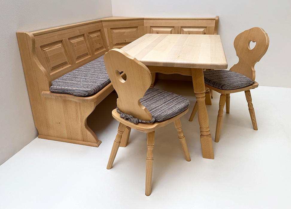 Eckbankgruppe LINDAU 150/185 Fichte, Tisch 4510-Amberg, Stuhl Munich, Armlehnstuhl Munich, Polster