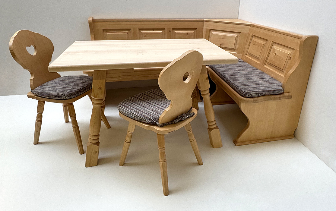 Eckbankgruppe LINDAU 150/185 Fichte, Tisch 4510-Amberg, Bauernstuhl Munich, Armlehnstuhl Munich
