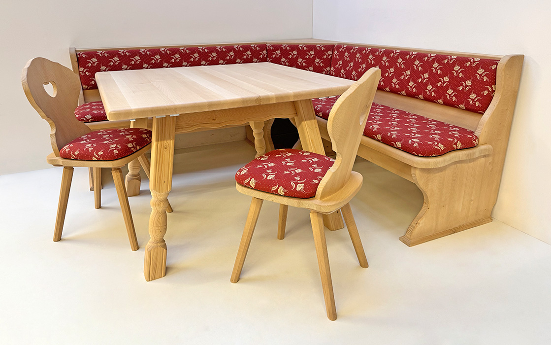 Eckbankgruppe LINDAU 140/180, Vollpolster, Tisch 4510-Amberg, Armlehnstuhl Vienna gedrechselt Kössen