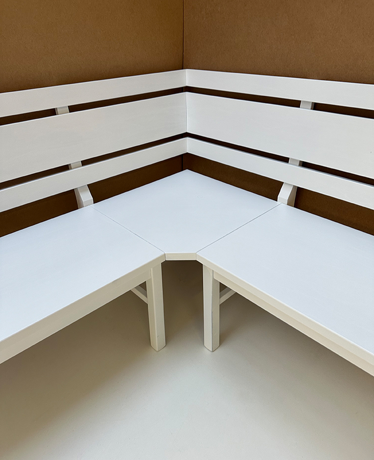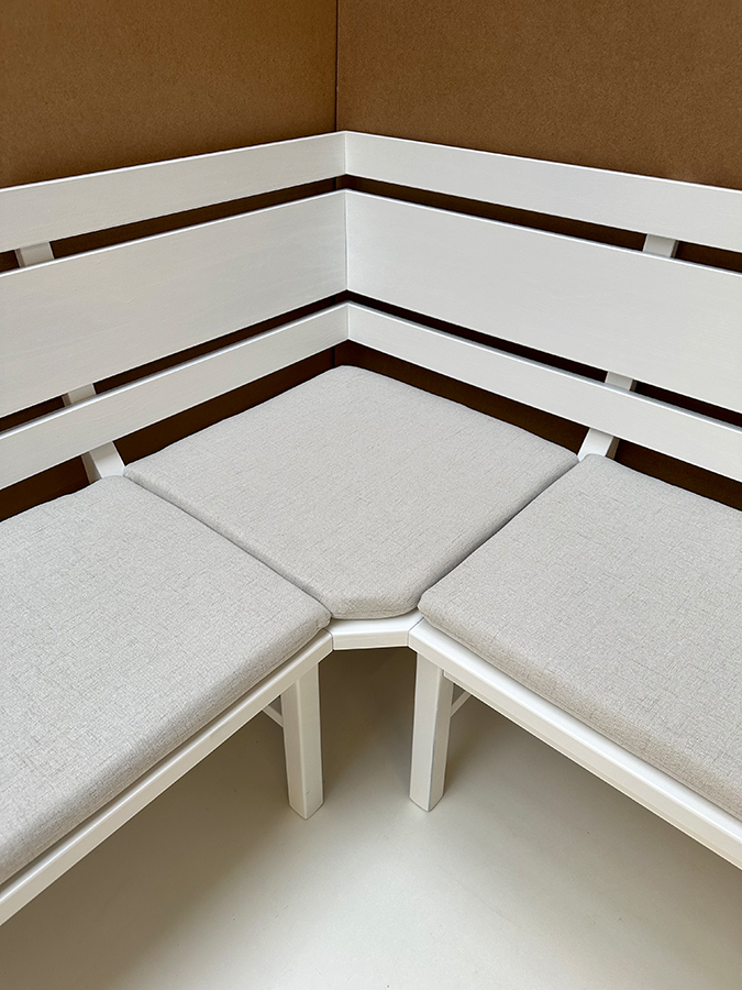 Eckbank Brühl, Schenkelmaß 150/190 cm, mit schlichtem Rücken waagrechte Sprossen, Spitzecke wie Modell ISEO