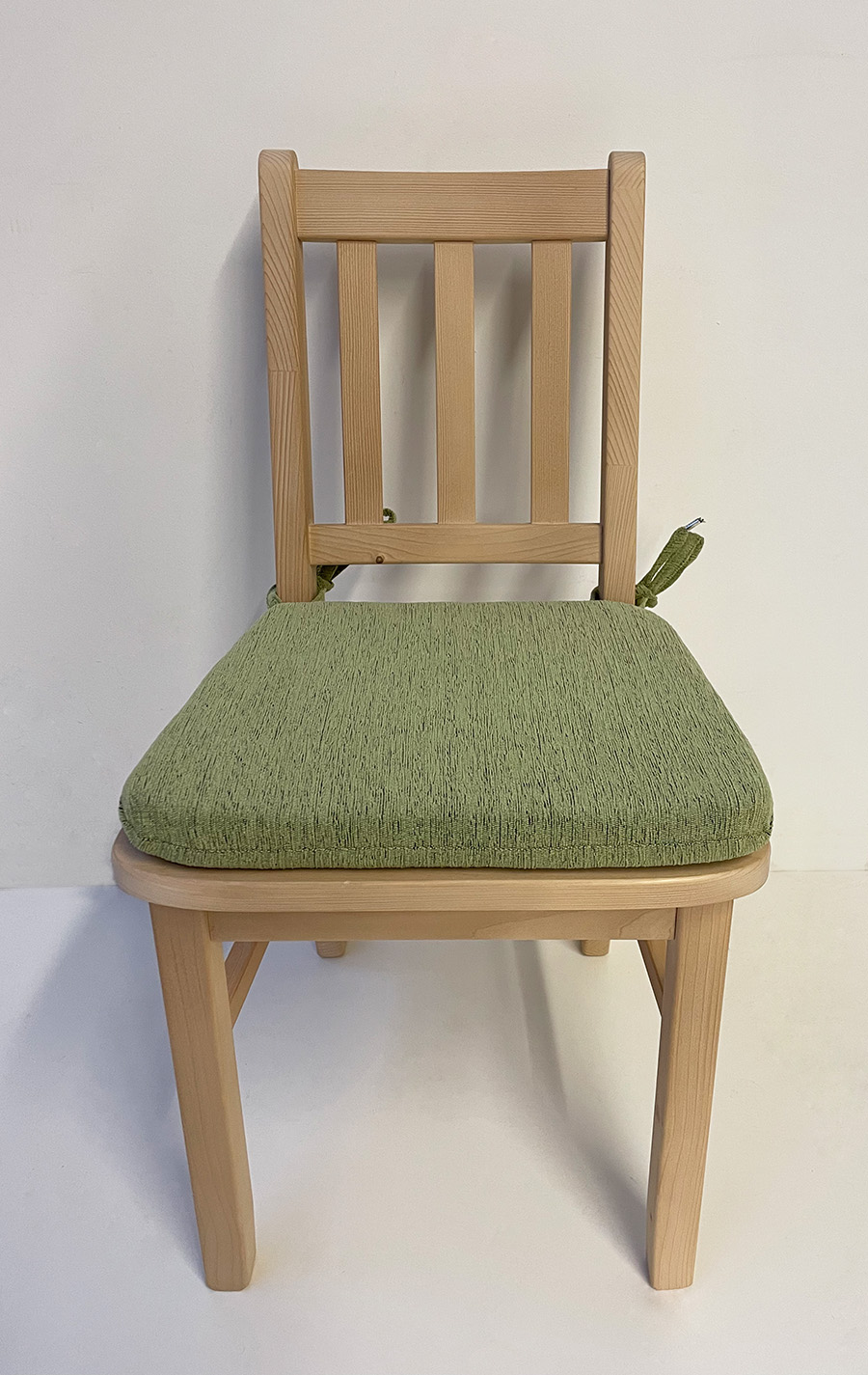 Sprossenstuhl Nürnberg Brühl mit 3 Langsprossen, Fichte massiv, Polster genäht, Landshut grün