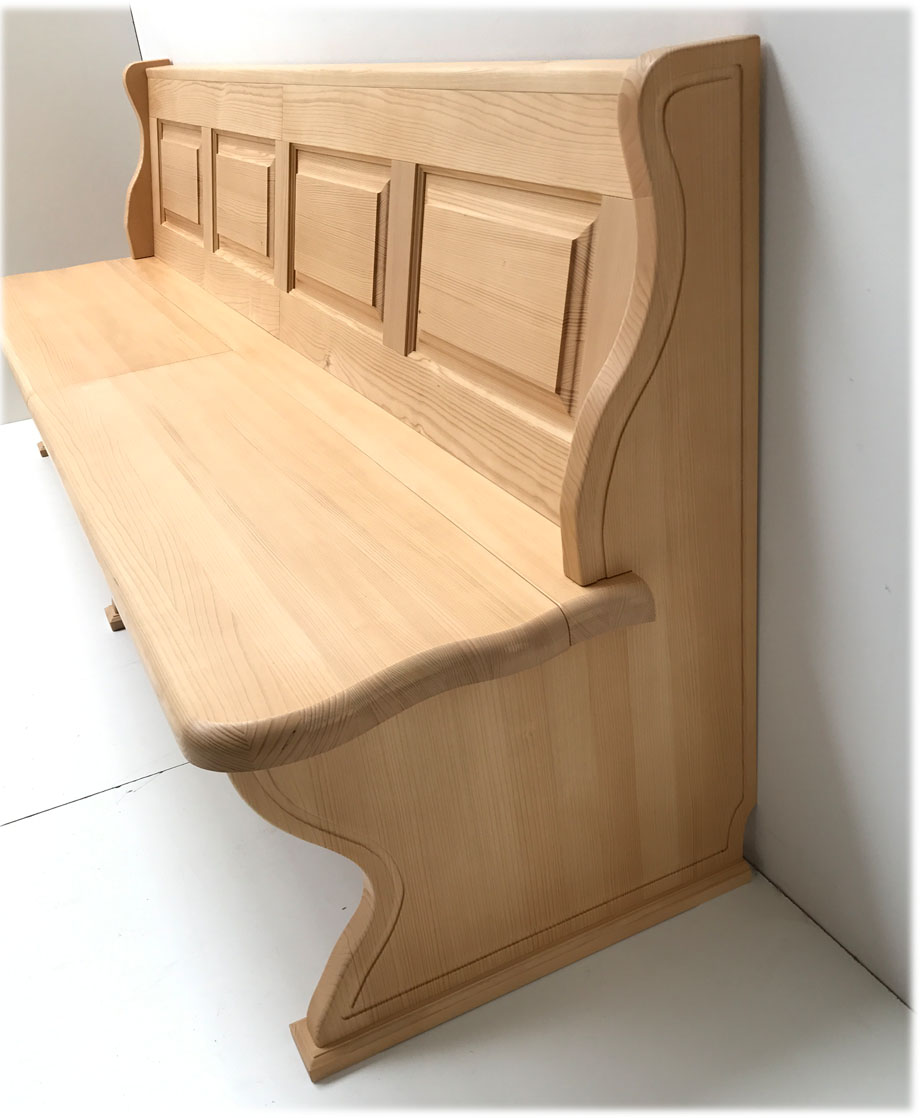 Einzelbank Lindau mit 2 Truhen, Höhe Wangen 88,5 cm, Ablage 87 cm,  Länge 250 cm, starker Sitz und starke Wangen 4 cm , Aussenwangen gerillt